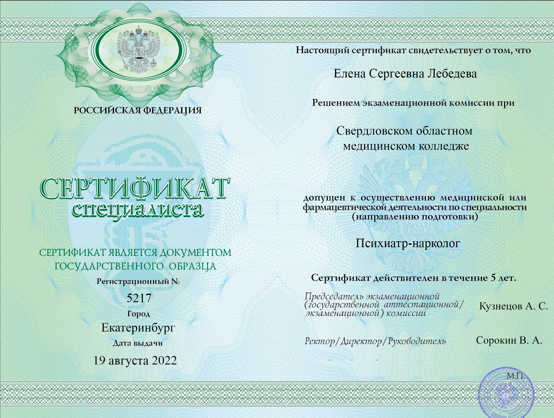 Елена Сергеевна Лебедева врач нарколог клиники доктора Стукаловой в Снежногорске